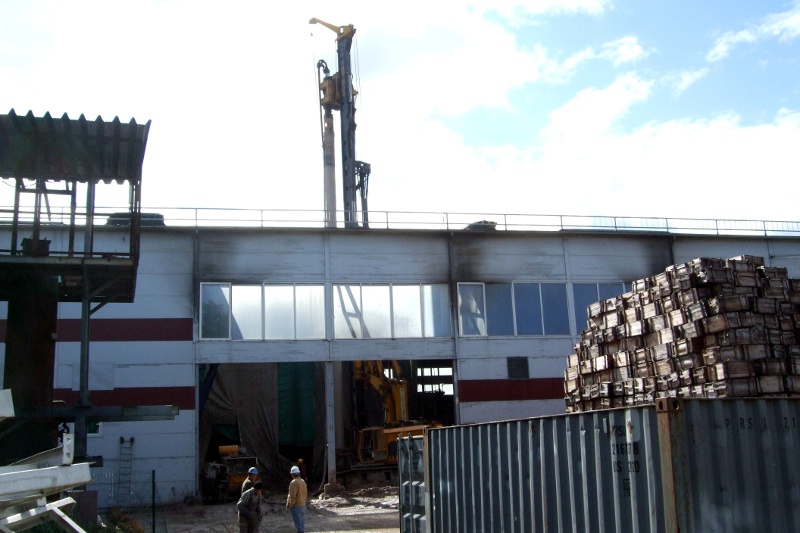Project of 11 meter deep pit for aluminium casting machines inside existing manufacturing plant was designed in 2011. Bored pile wall used for soil retaining.